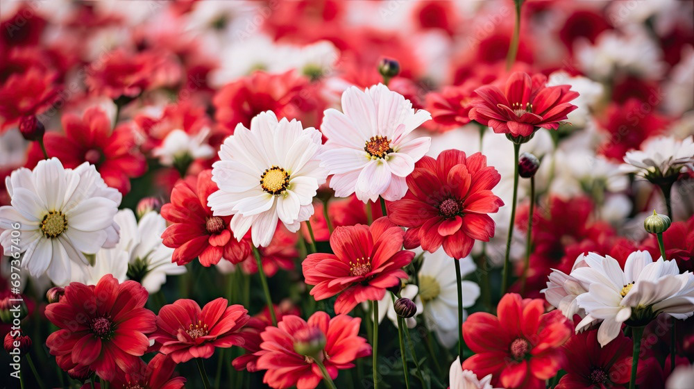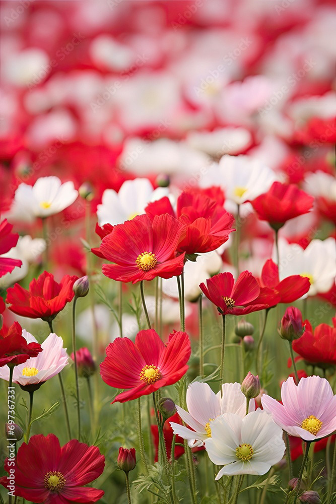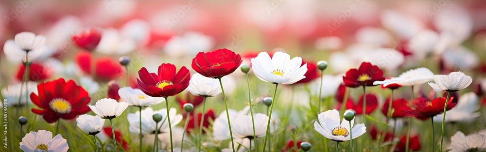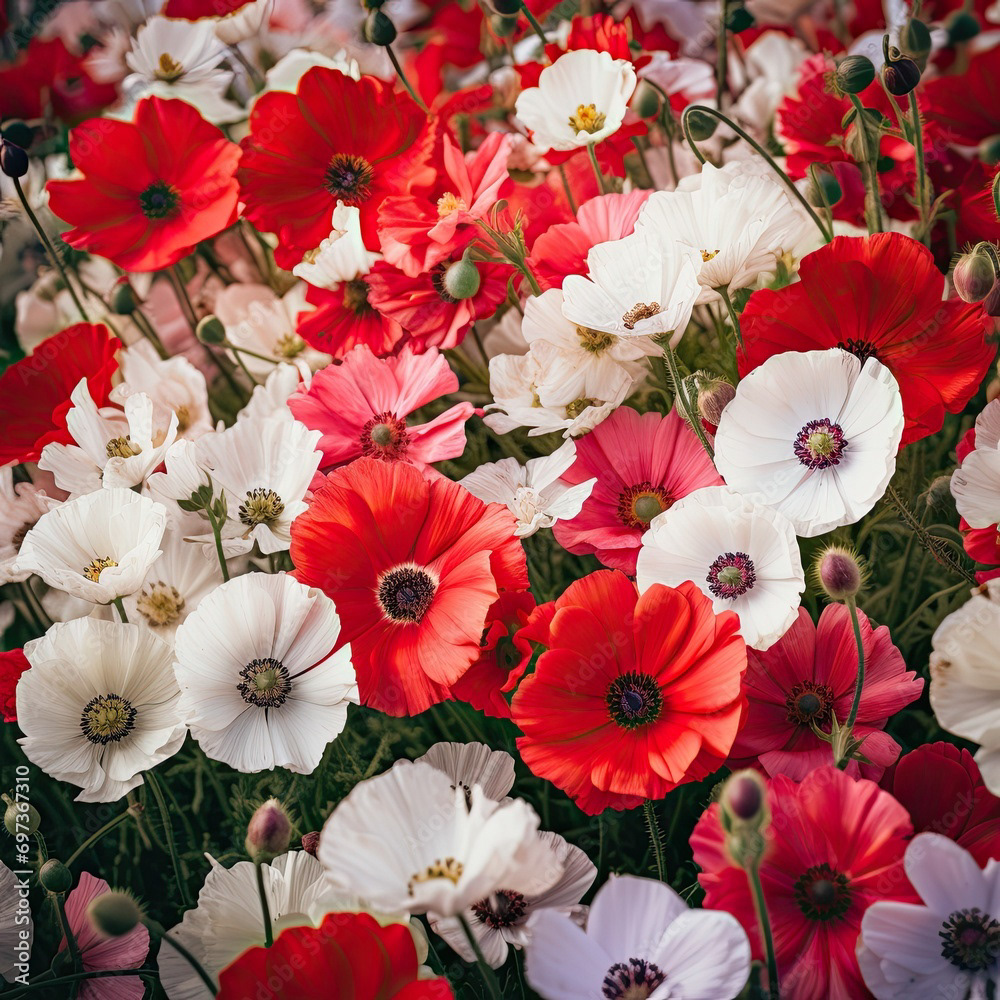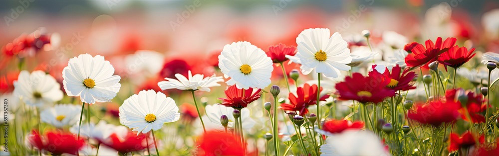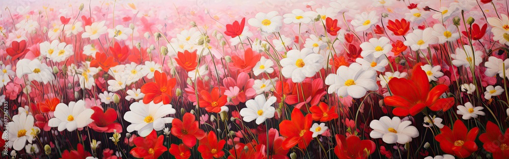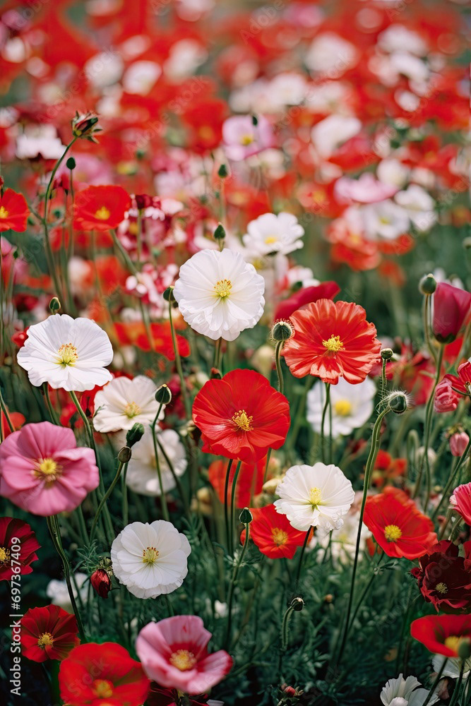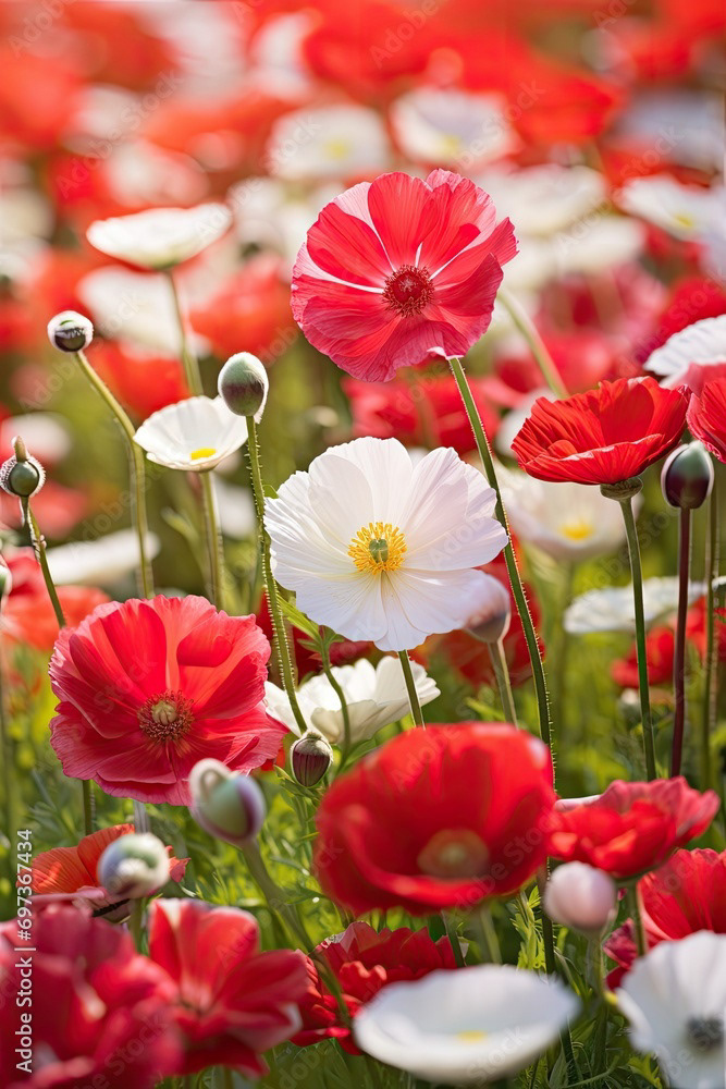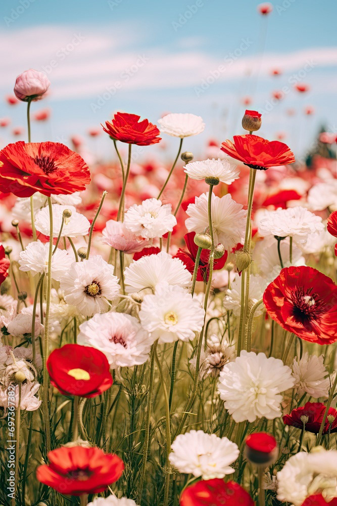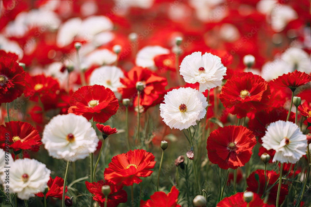Meadow of white and red flowers
