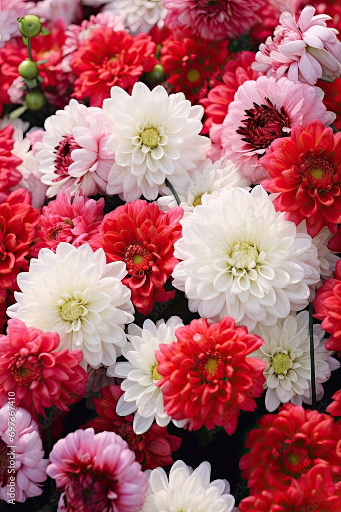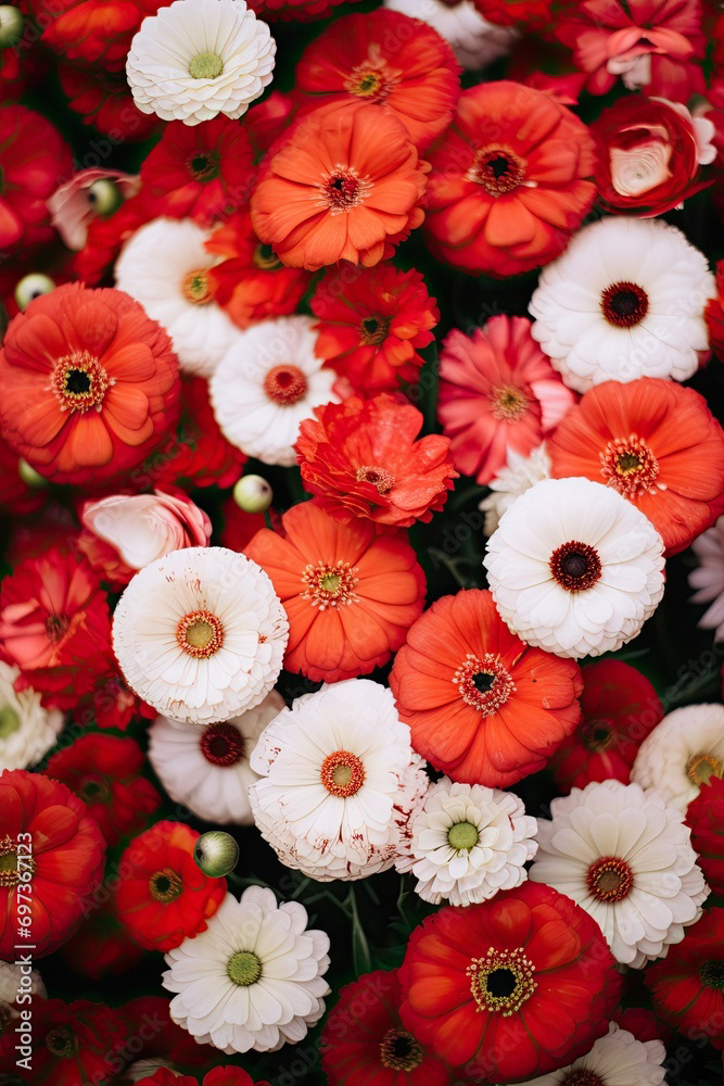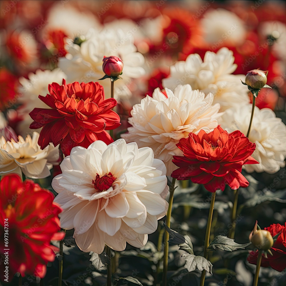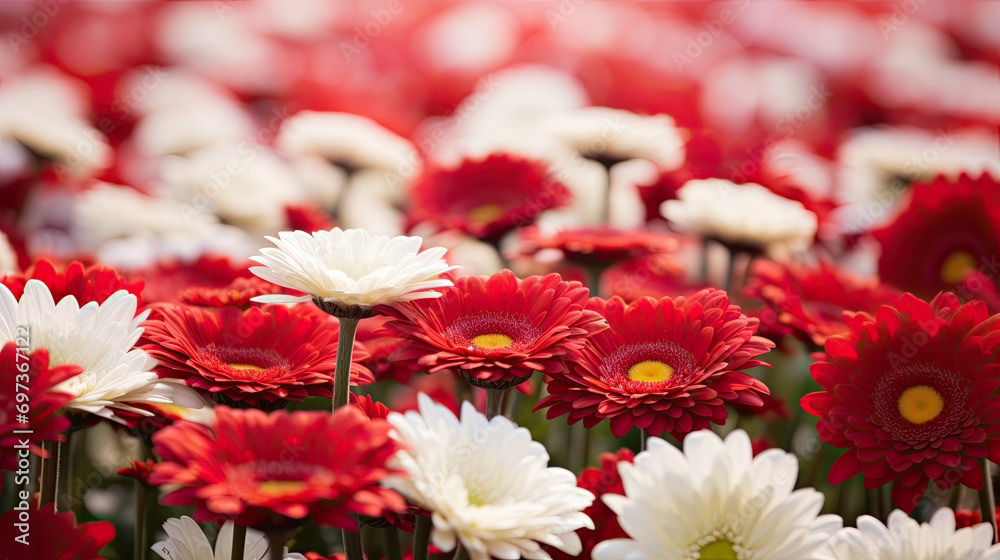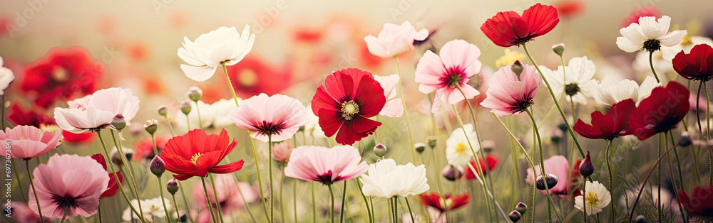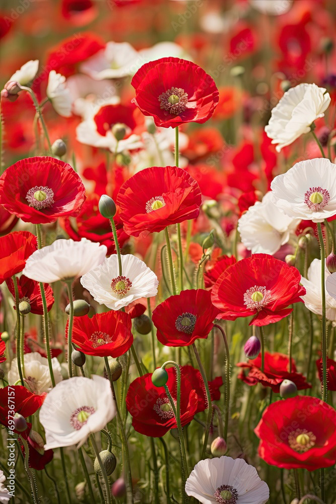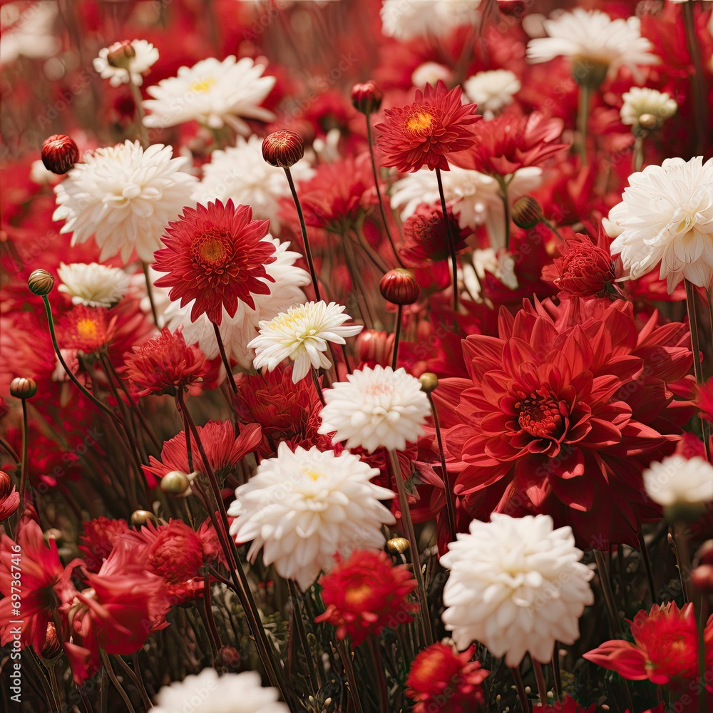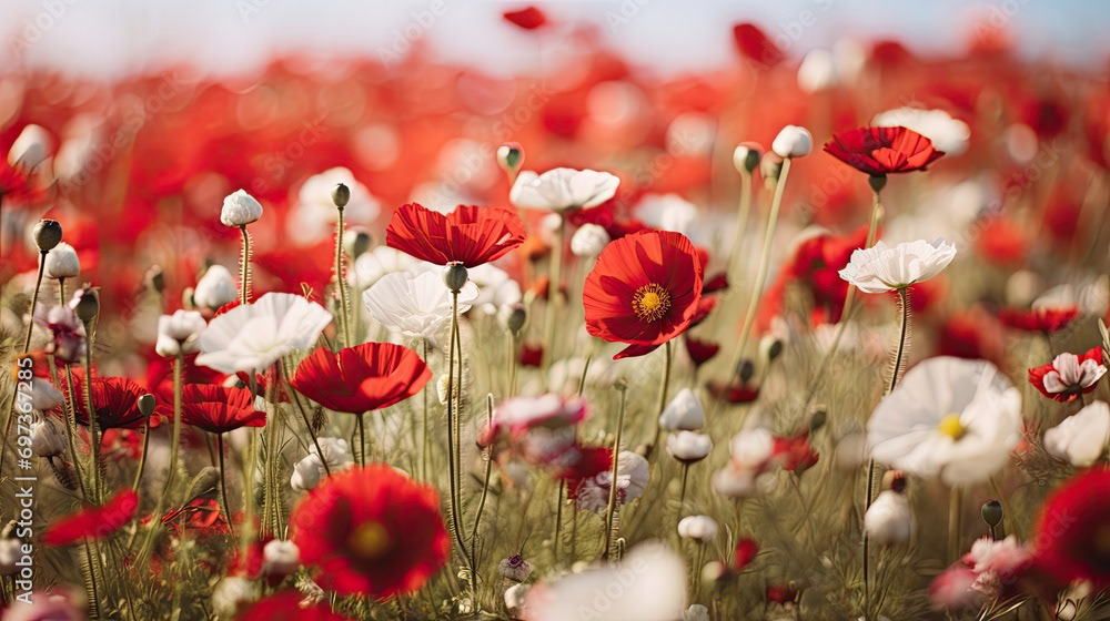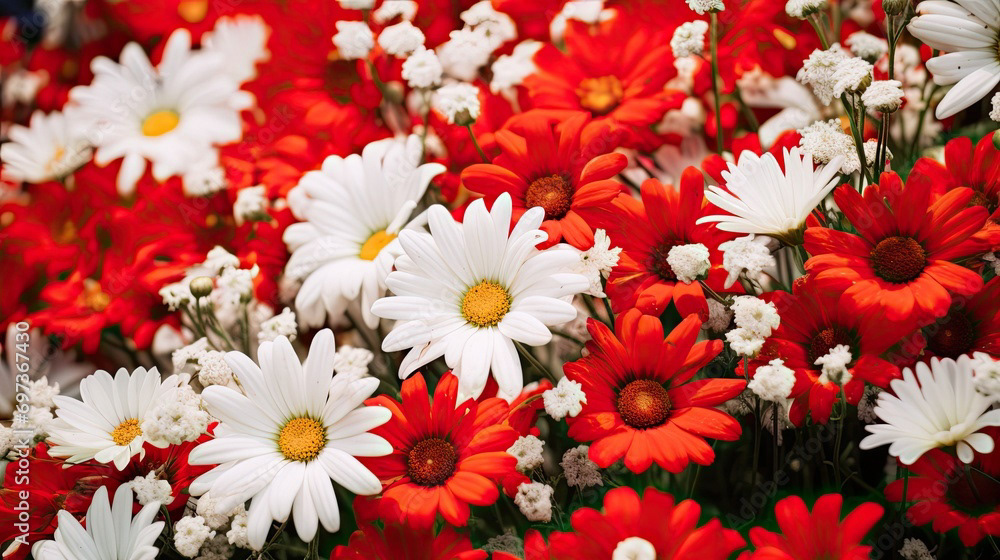 Meadow of white and red flowers