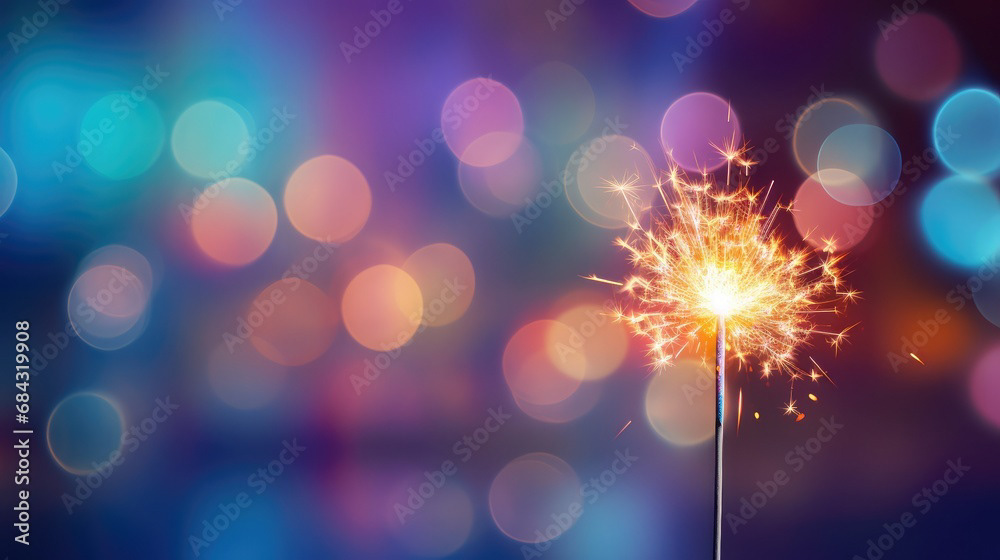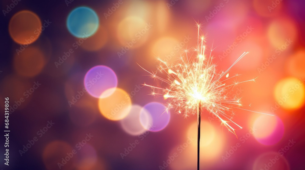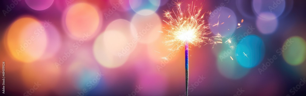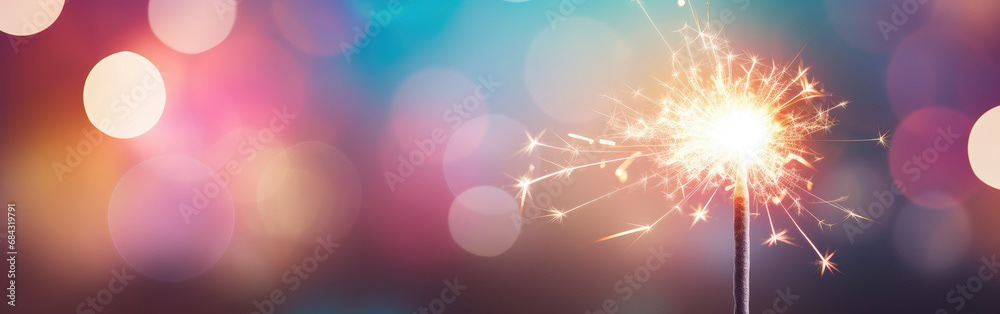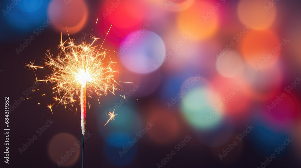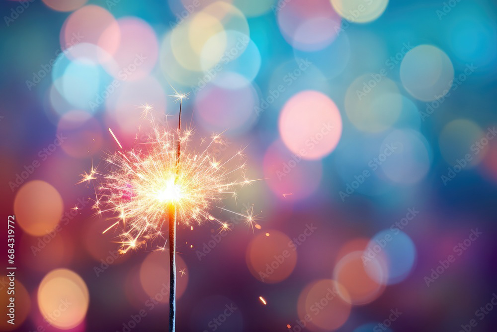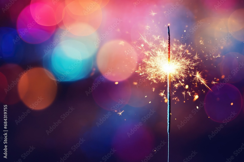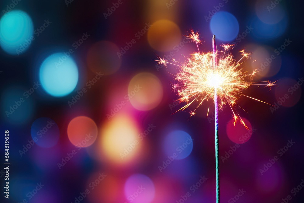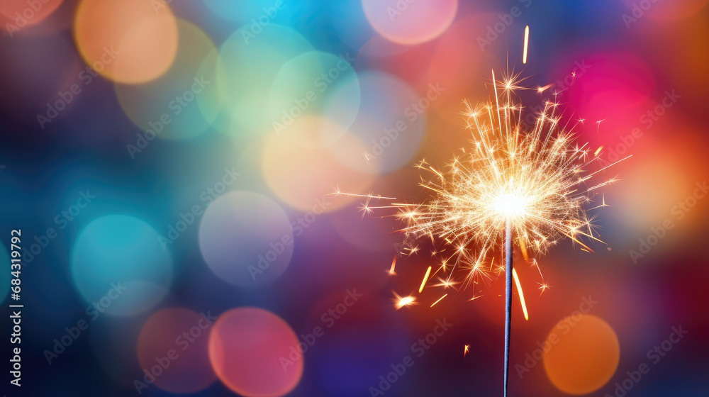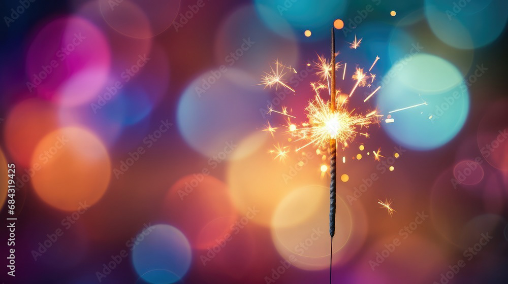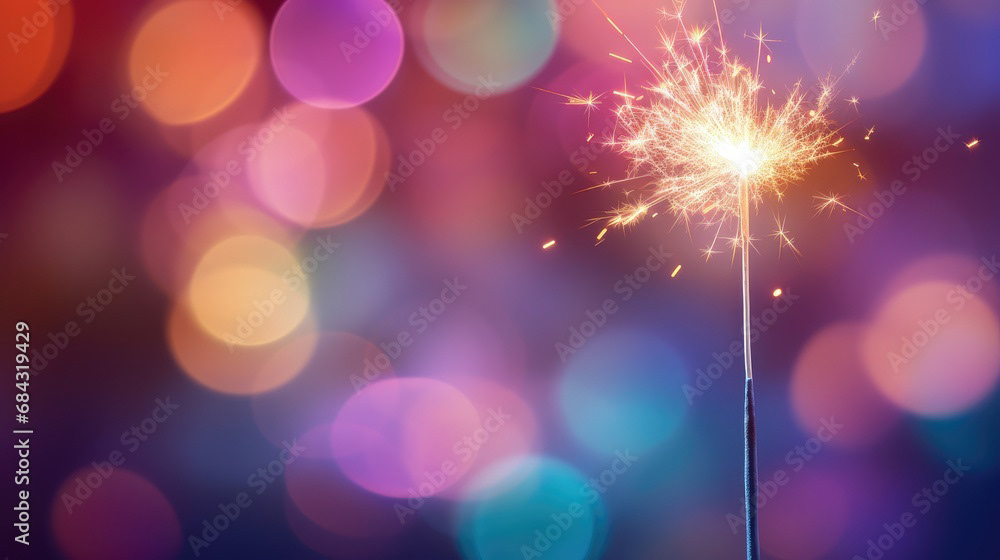 Single sparkler light with colorful background