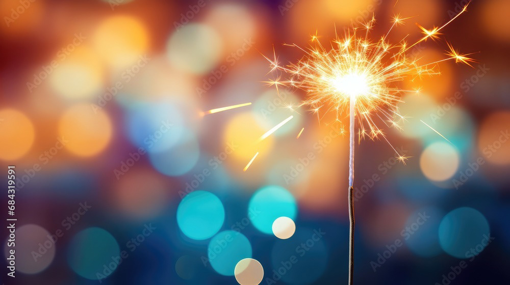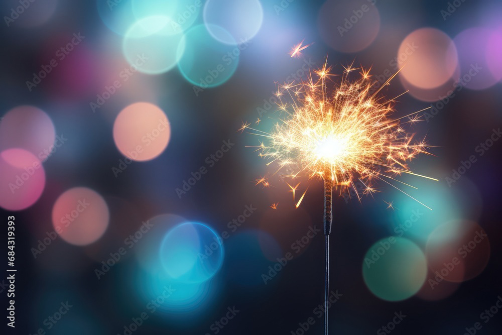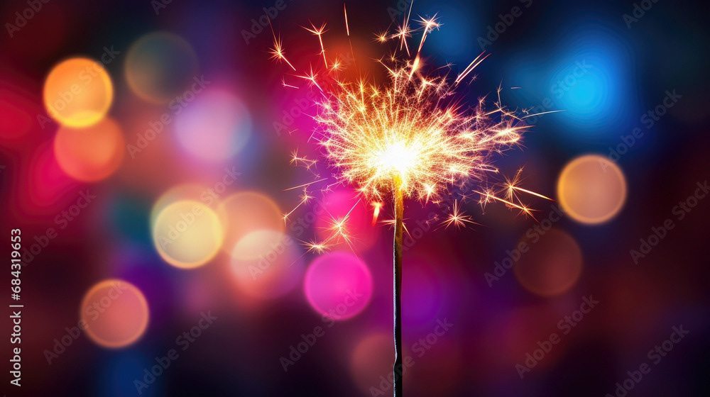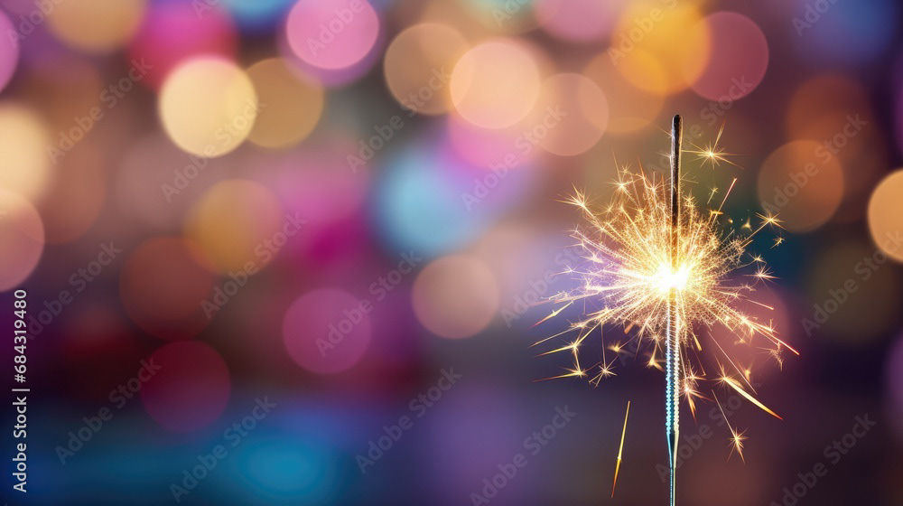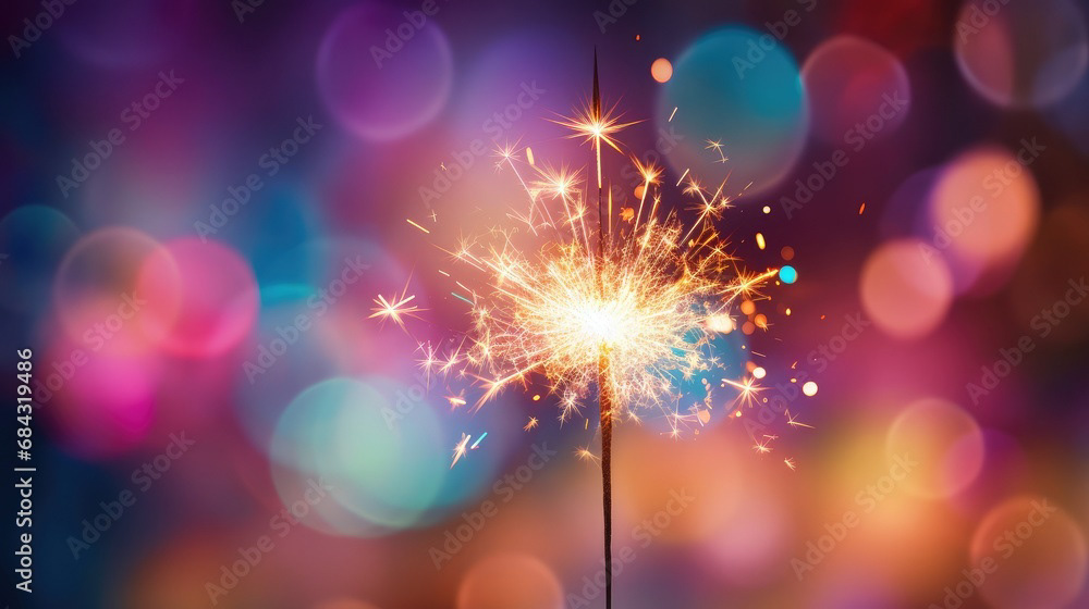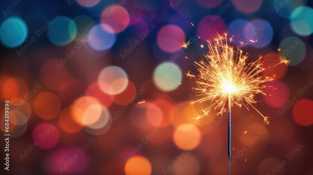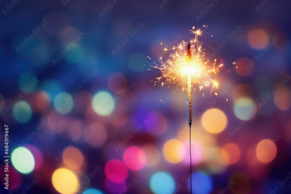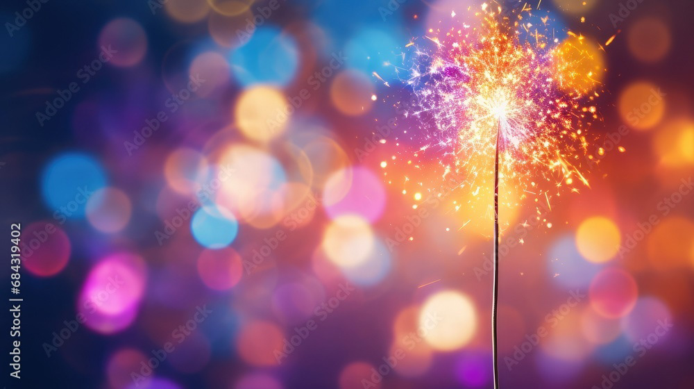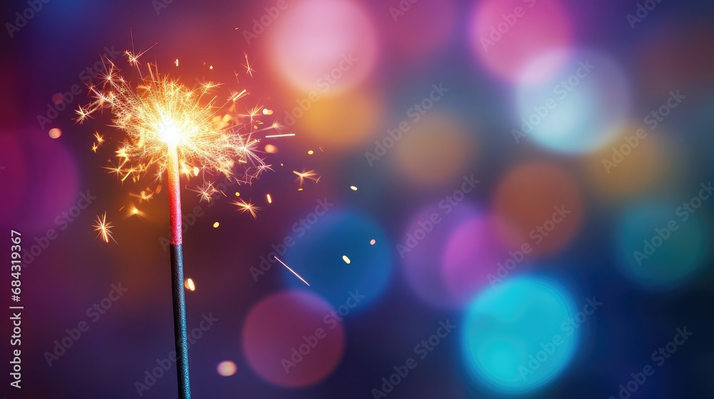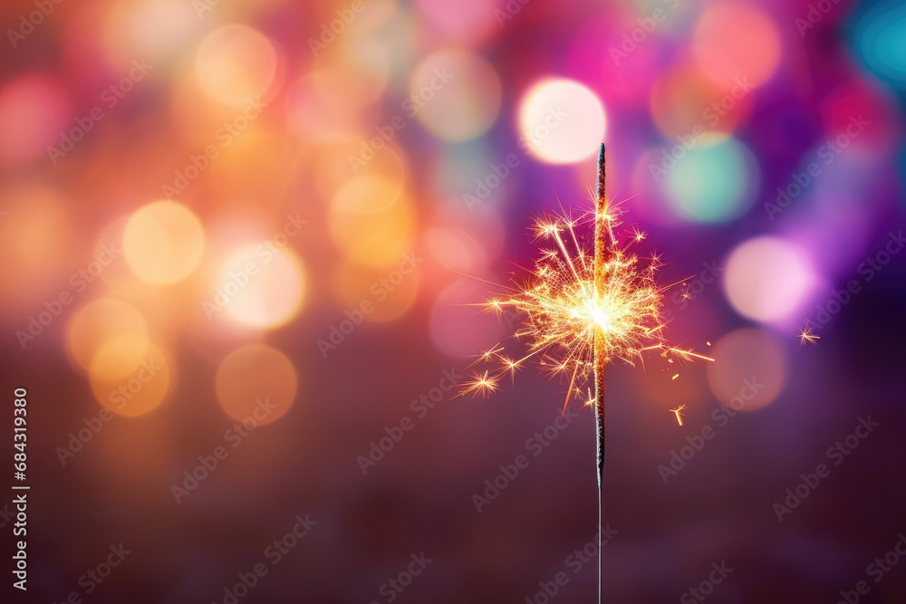 Single sparkler light with colorful background