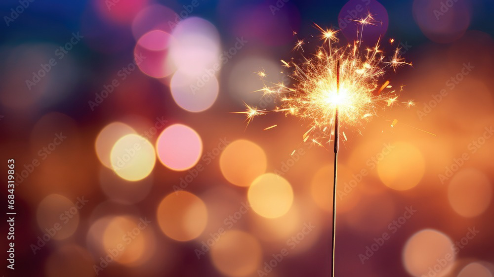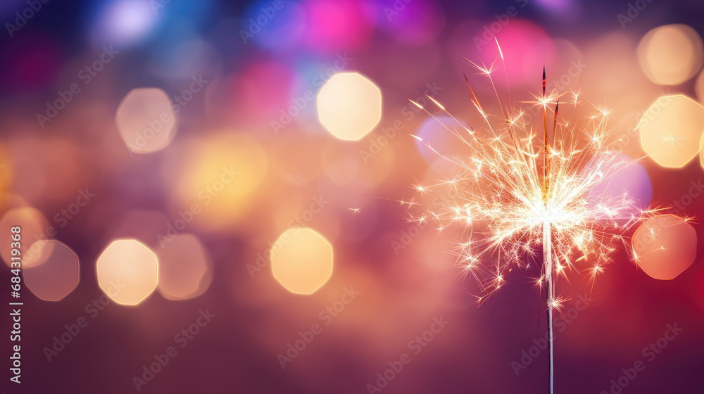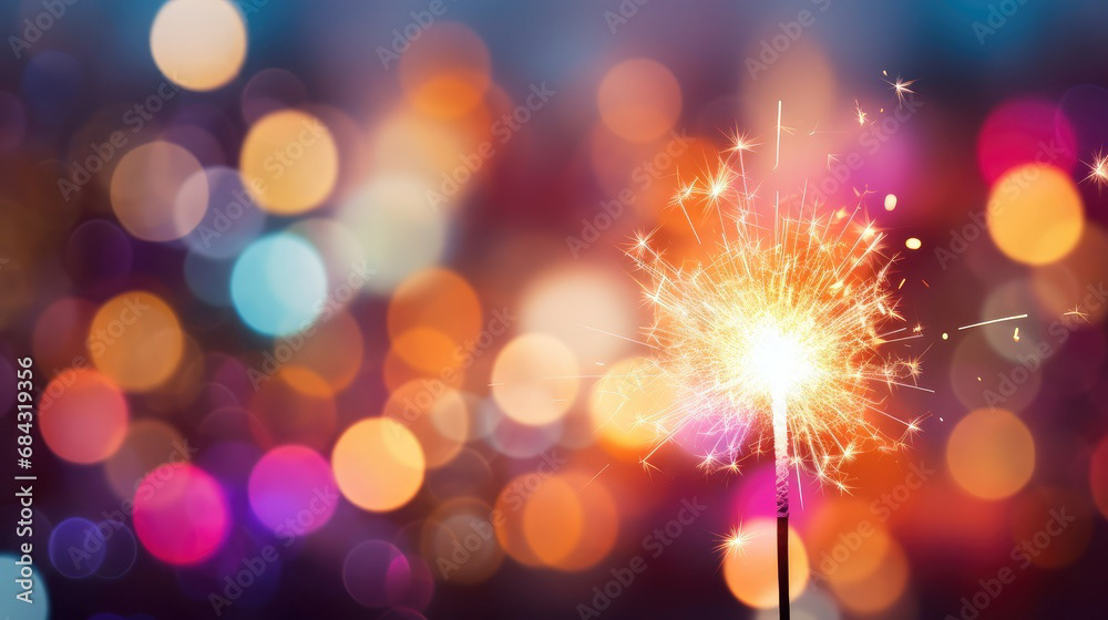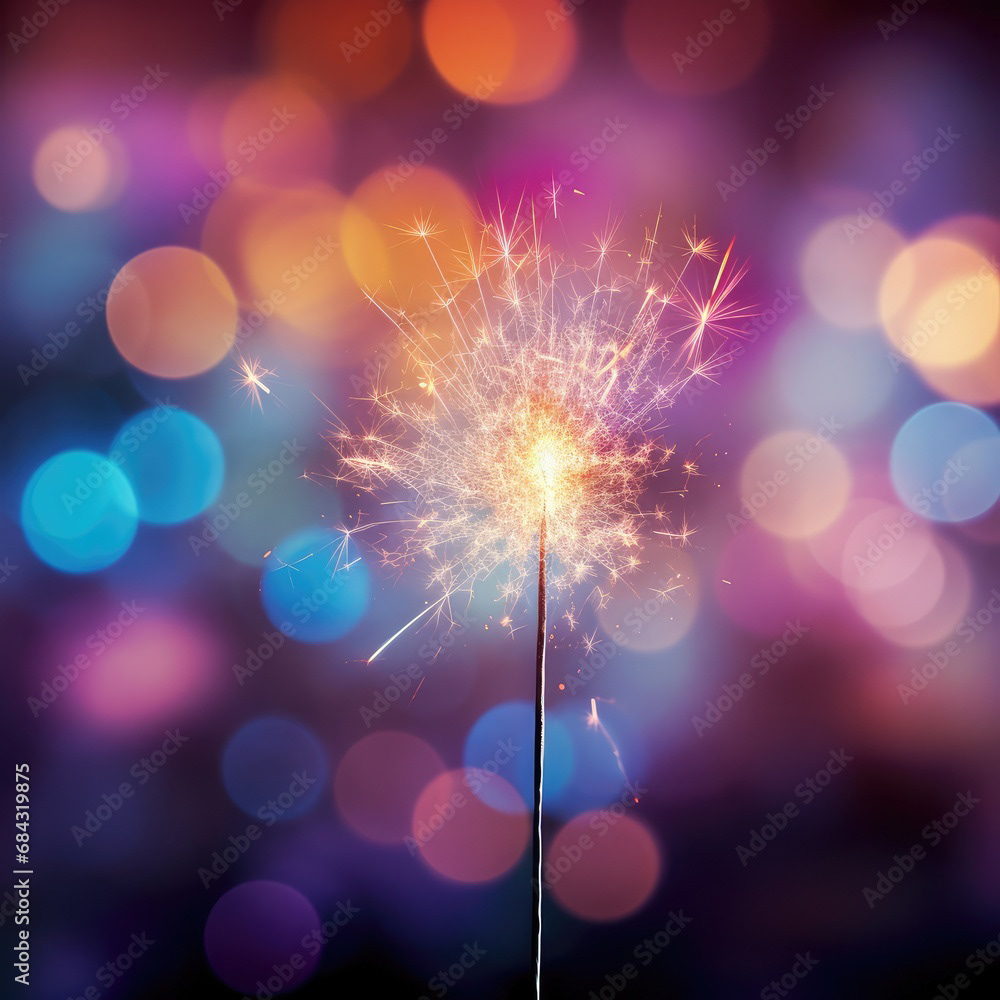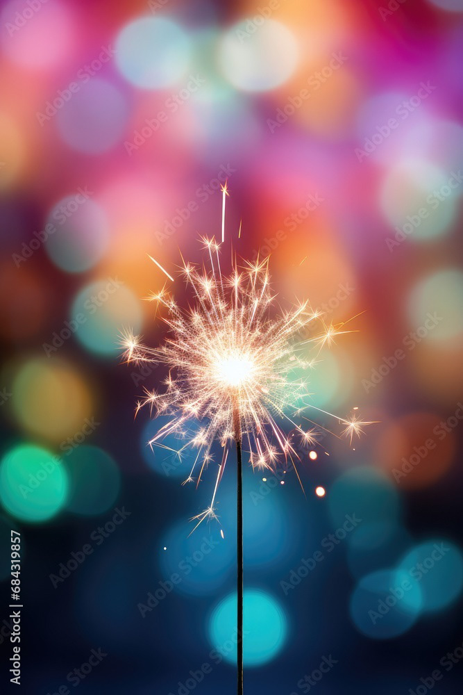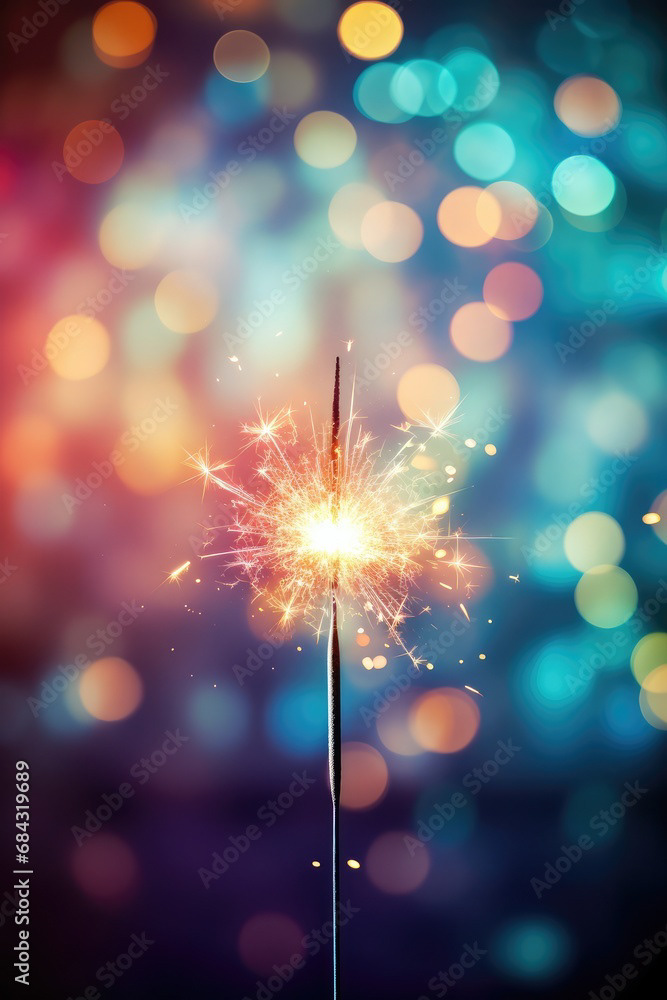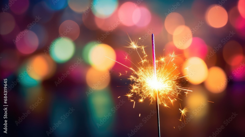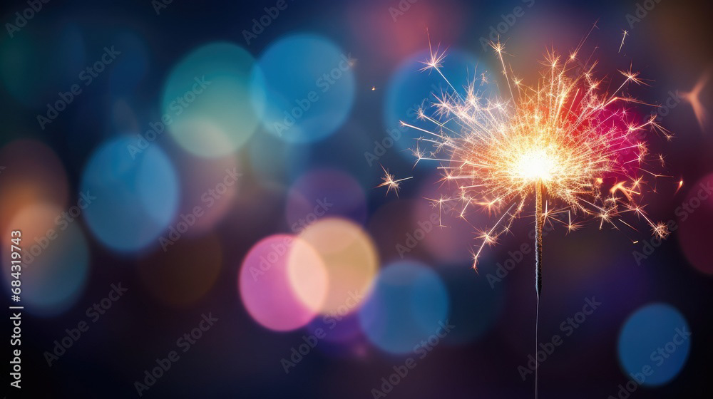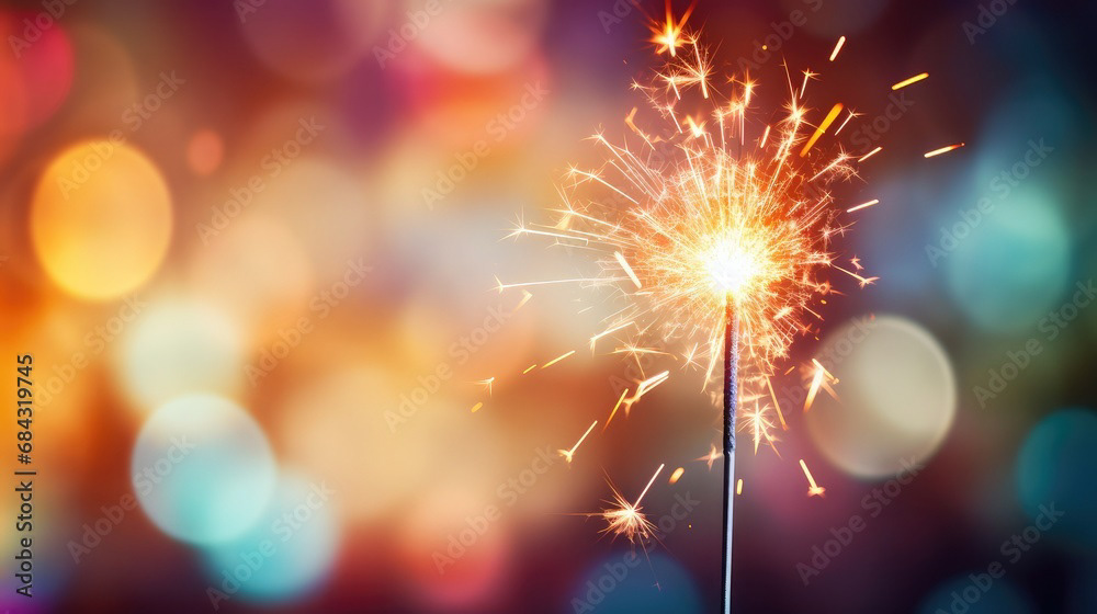 Single sparkler light with colorful background