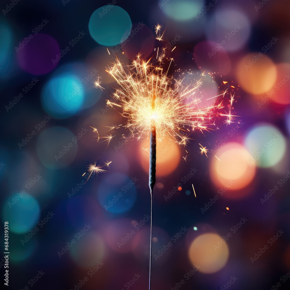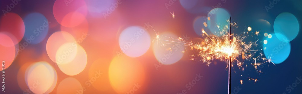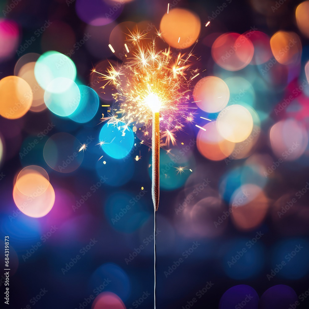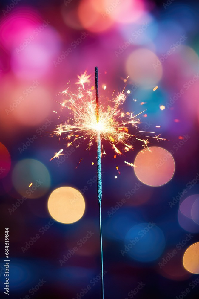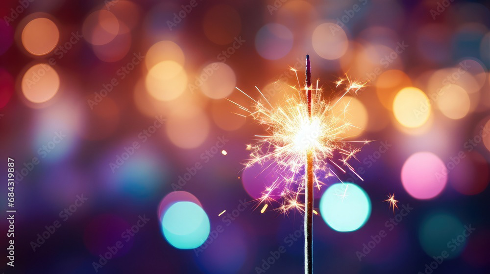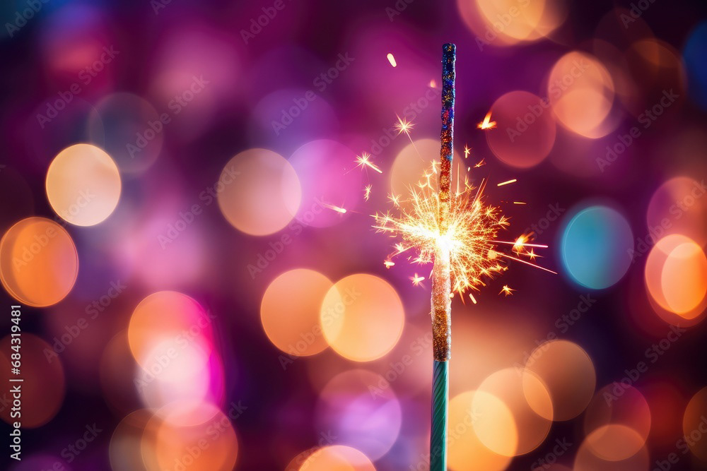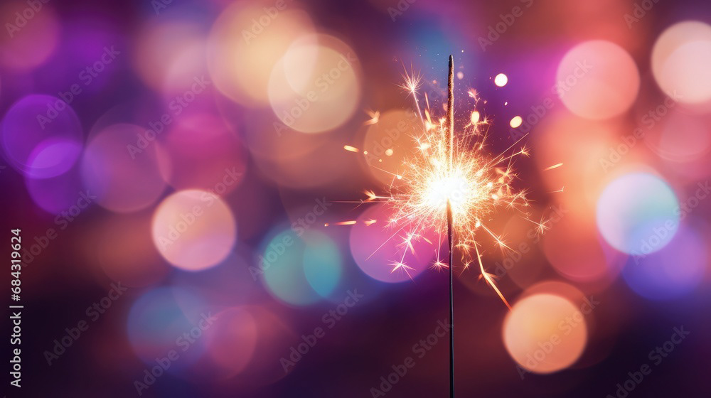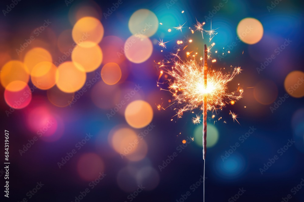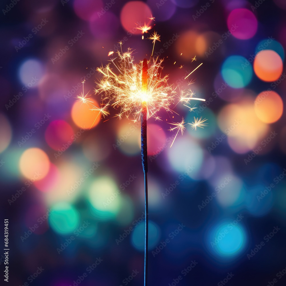 Single sparkler light with colorful background