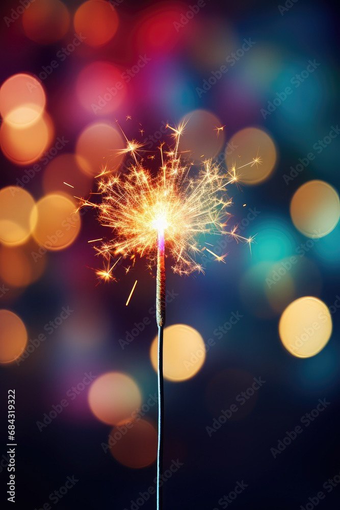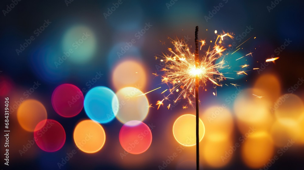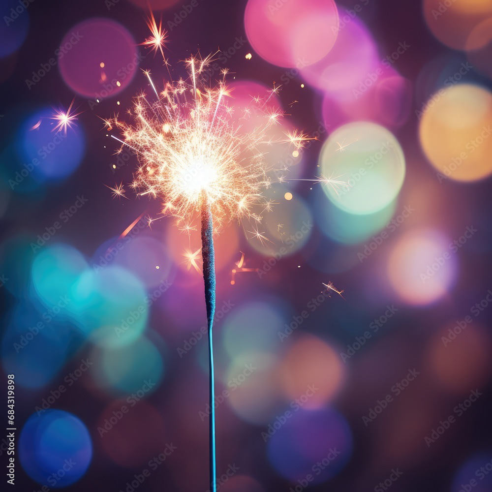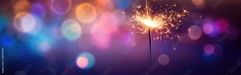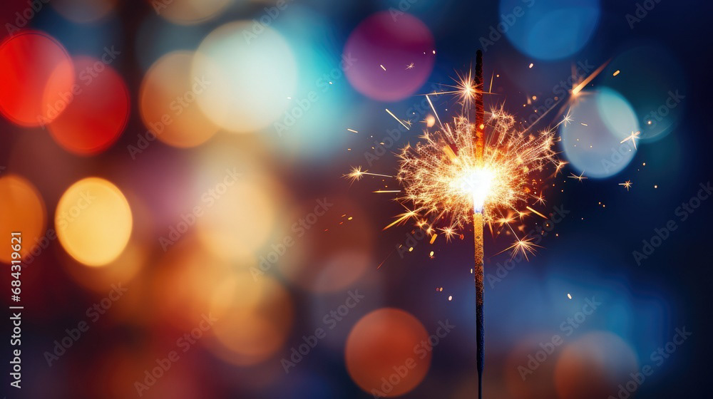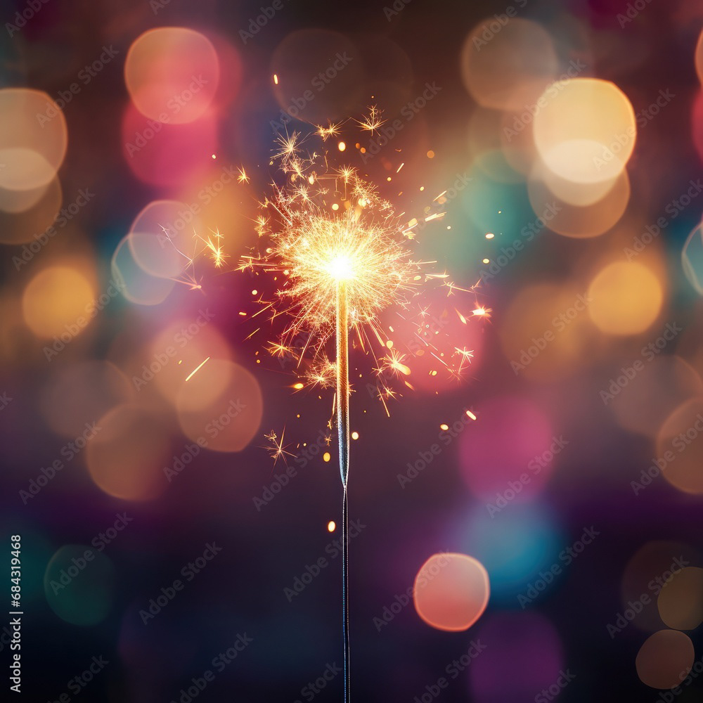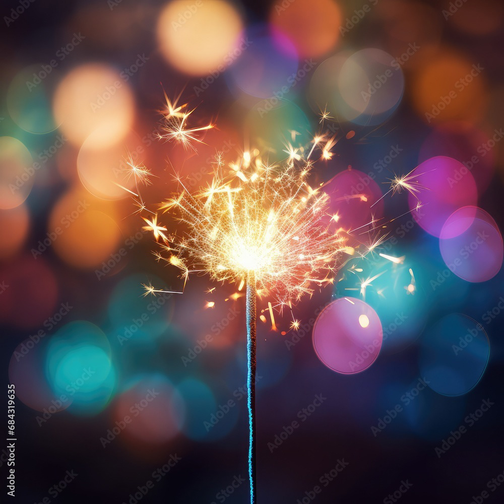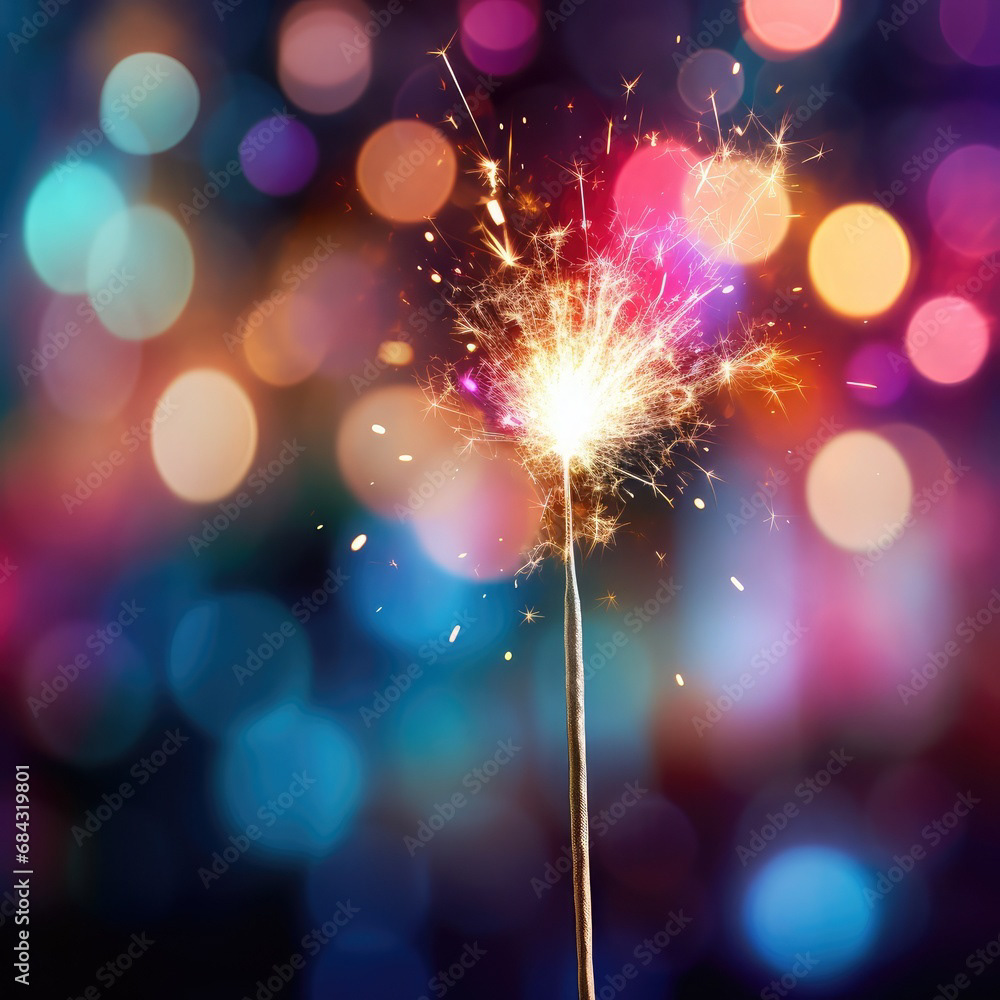 Single sparkler light with colorful background