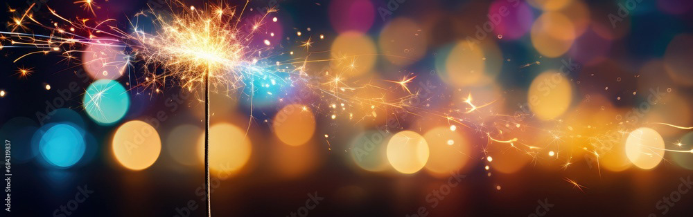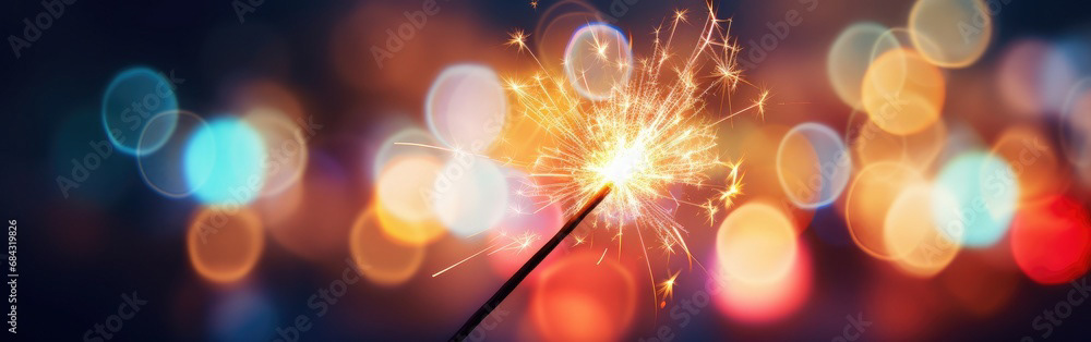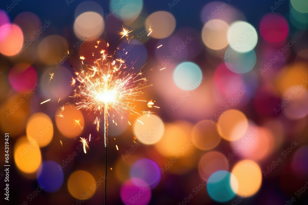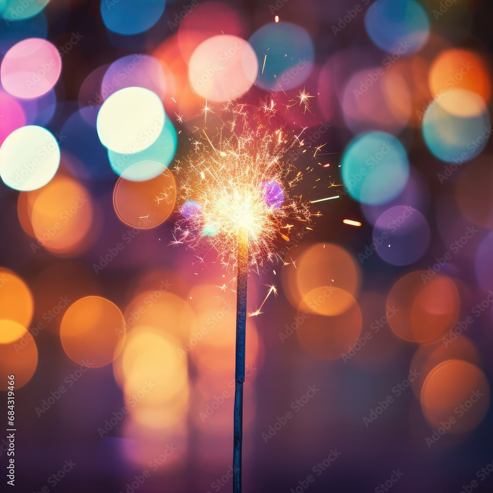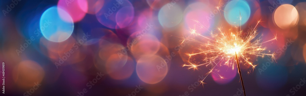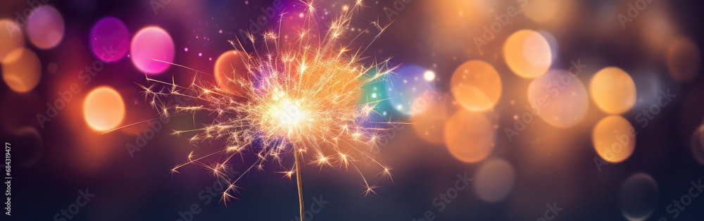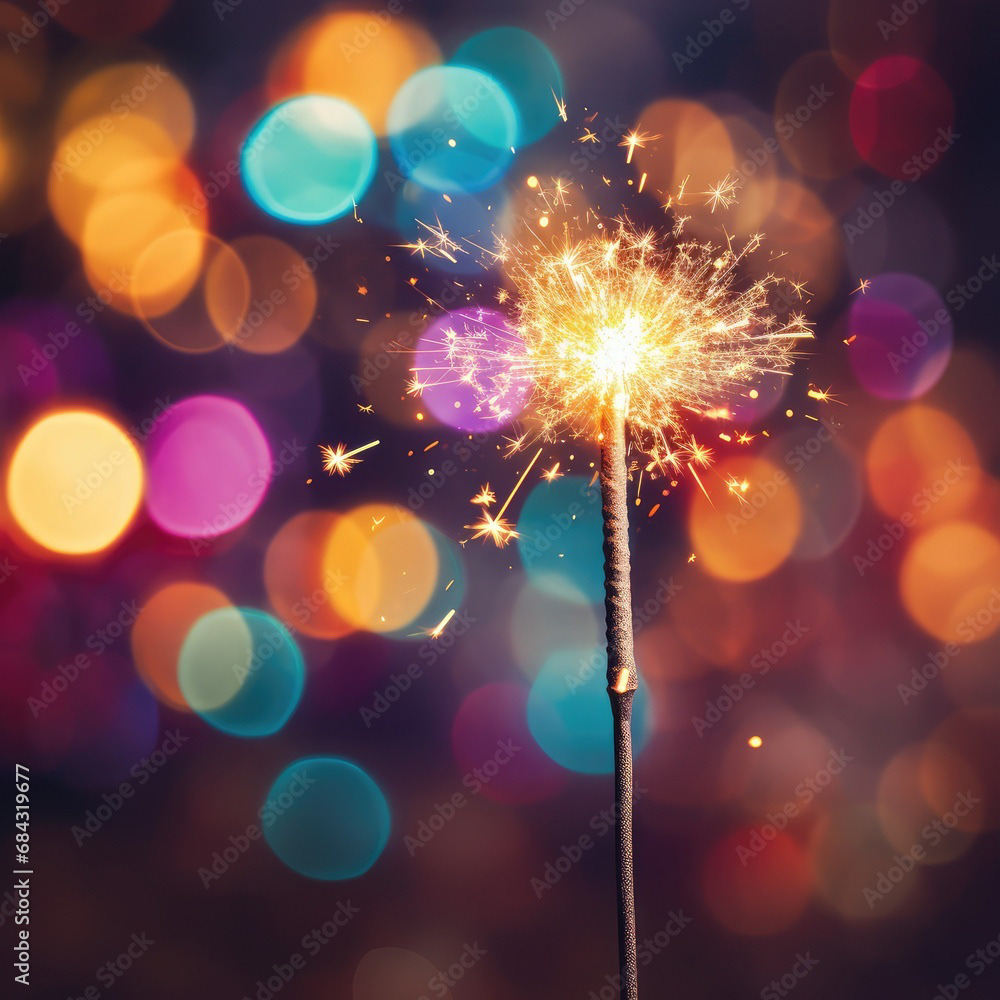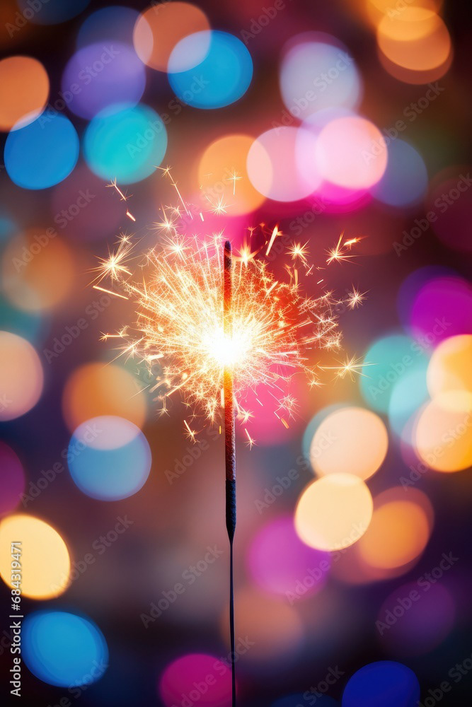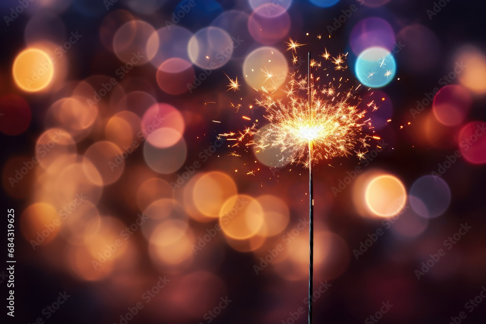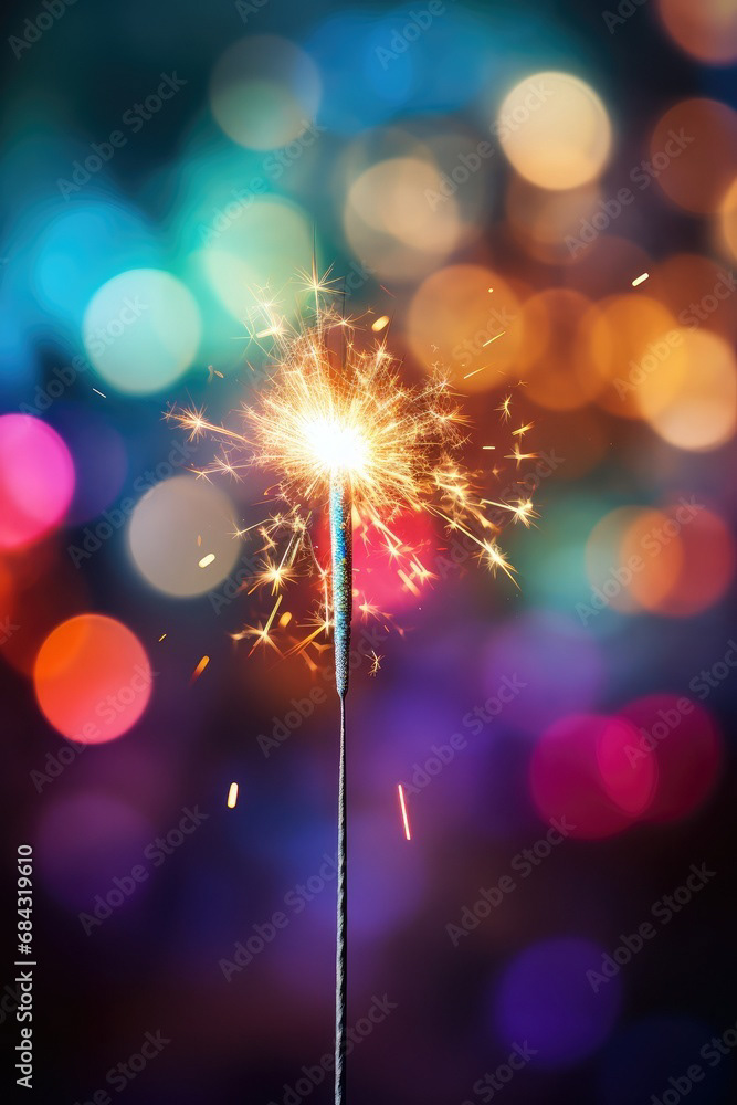 Single sparkler light with colorful background